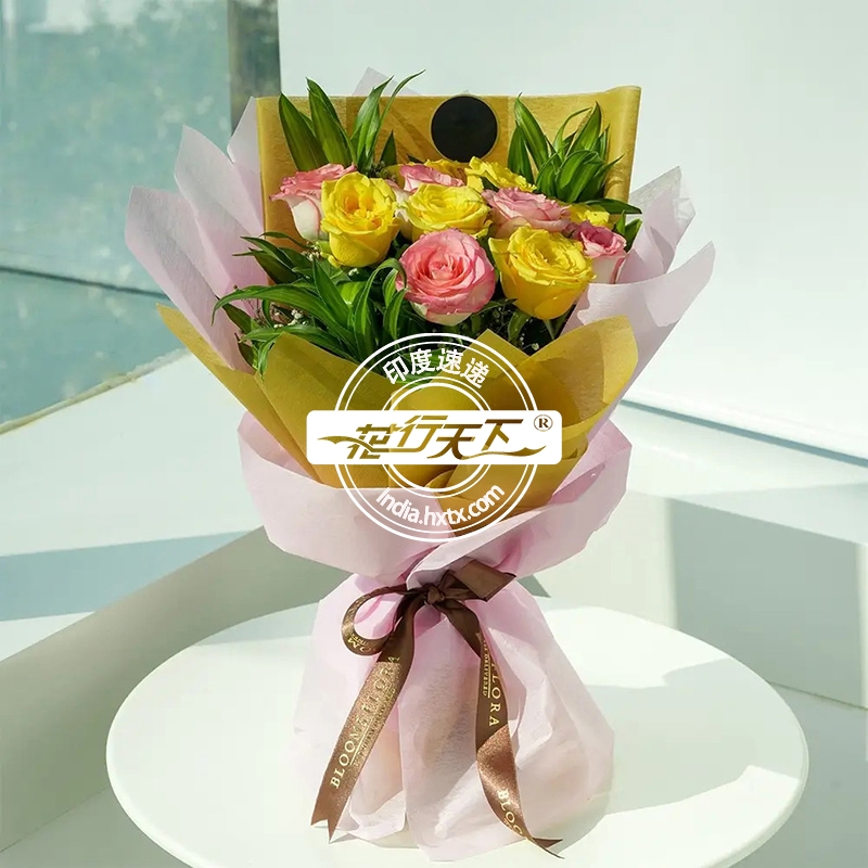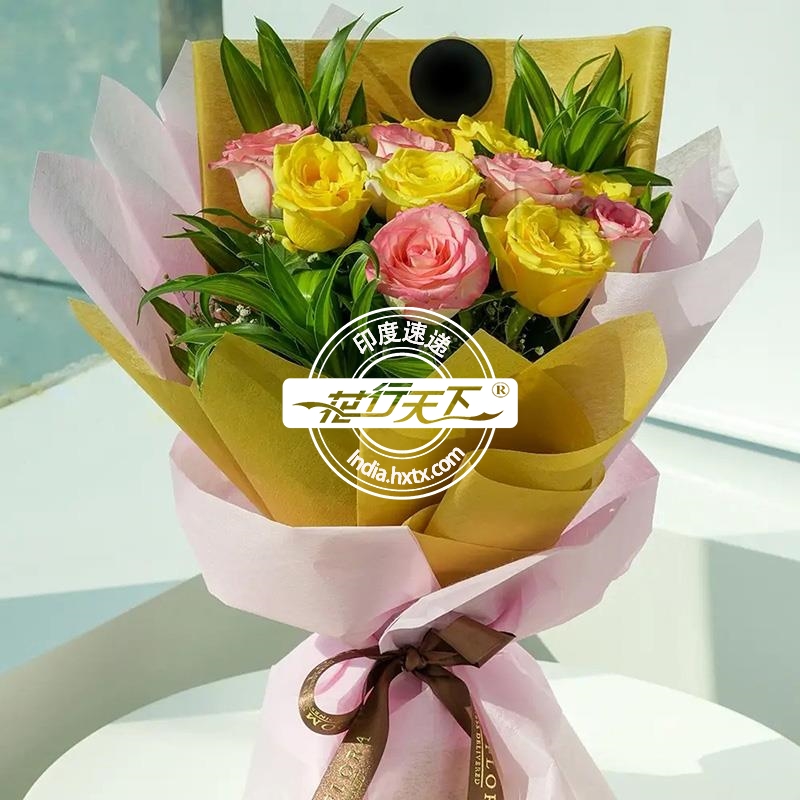 印度鲜花-黄粉玫瑰12枝