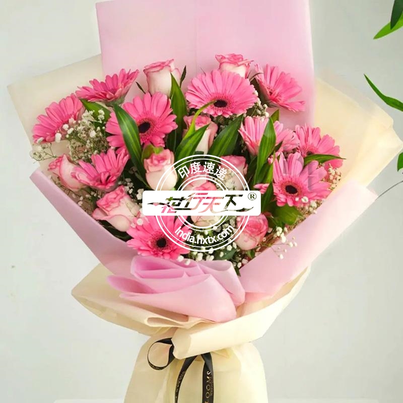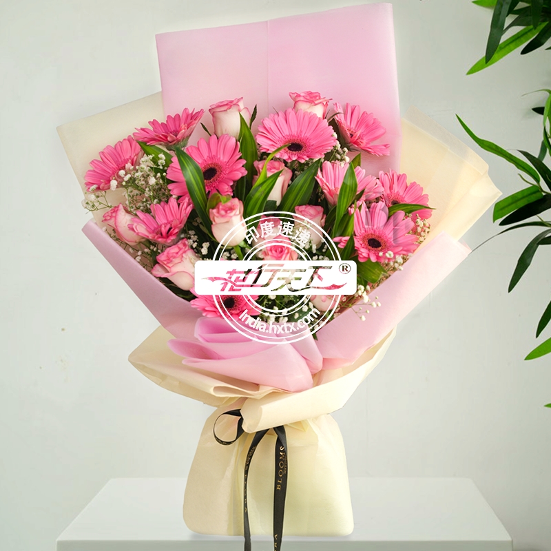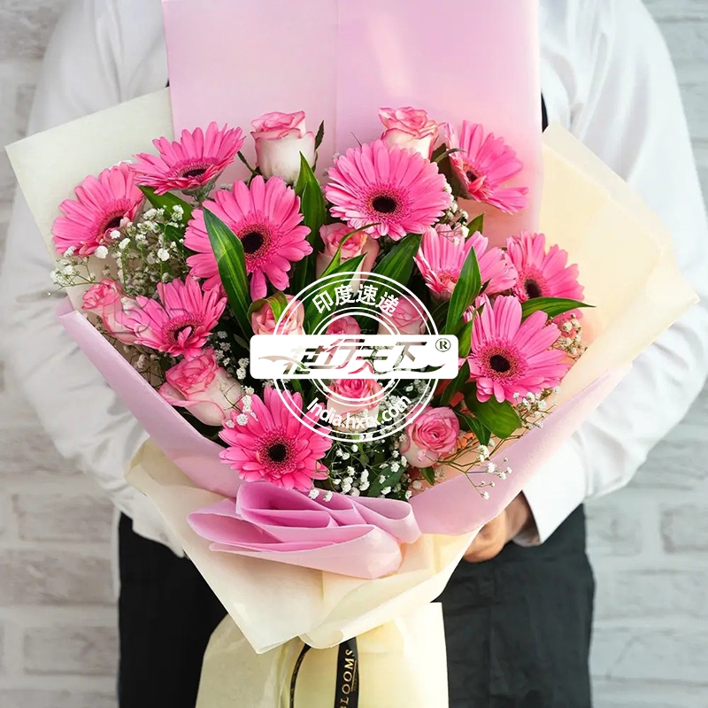 描述: 粉玫瑰10枝、非洲菊10枝、精美包装。