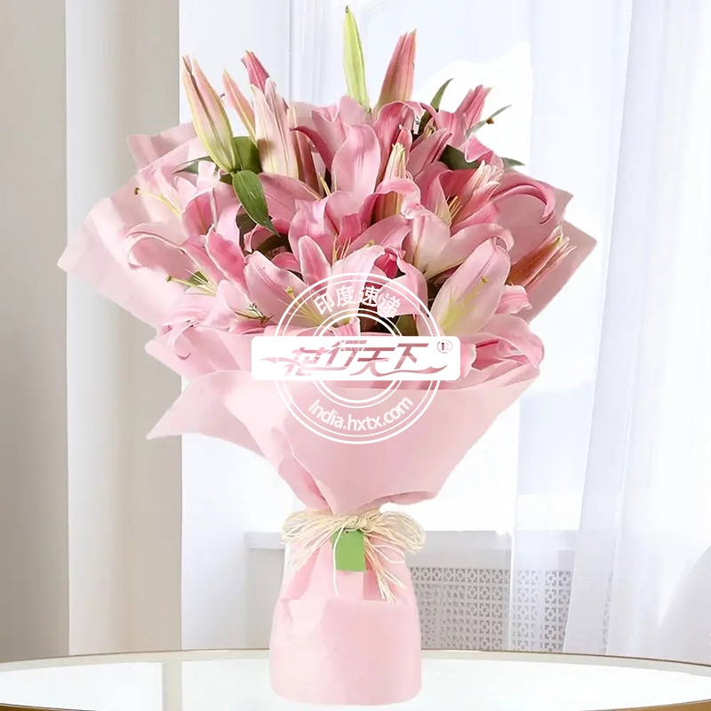 描述: 粉色百合6枝、精美包装。