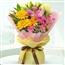 描述: 黄色非洲菊3枝、粉色康乃馨6枝、粉色百合2枝、精美包装。